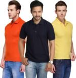 Men’s Polo Neck Half Sleeve Casual Tshirt Combo of Dark Blue, Orange, Yellow colors (Pack of 3)