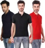 Men’s Polo Neck Short Sleeve Casual Tshirt Combo of Dark Blue, Red, Black colors (Pack of 3)